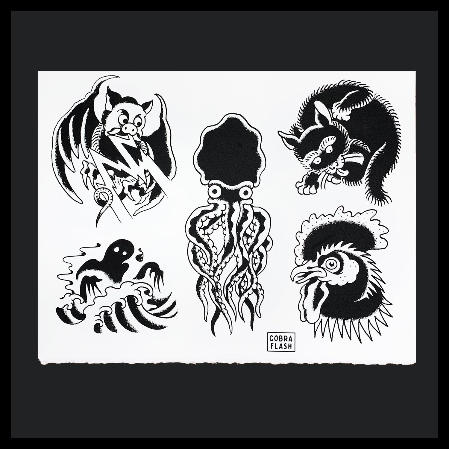 The set comes with six sheets of flash designed Lowercase j. Each sheet is an 11x14" hand-pulled screenprint on BFK Rives 250 gram, fine printmaking paper.