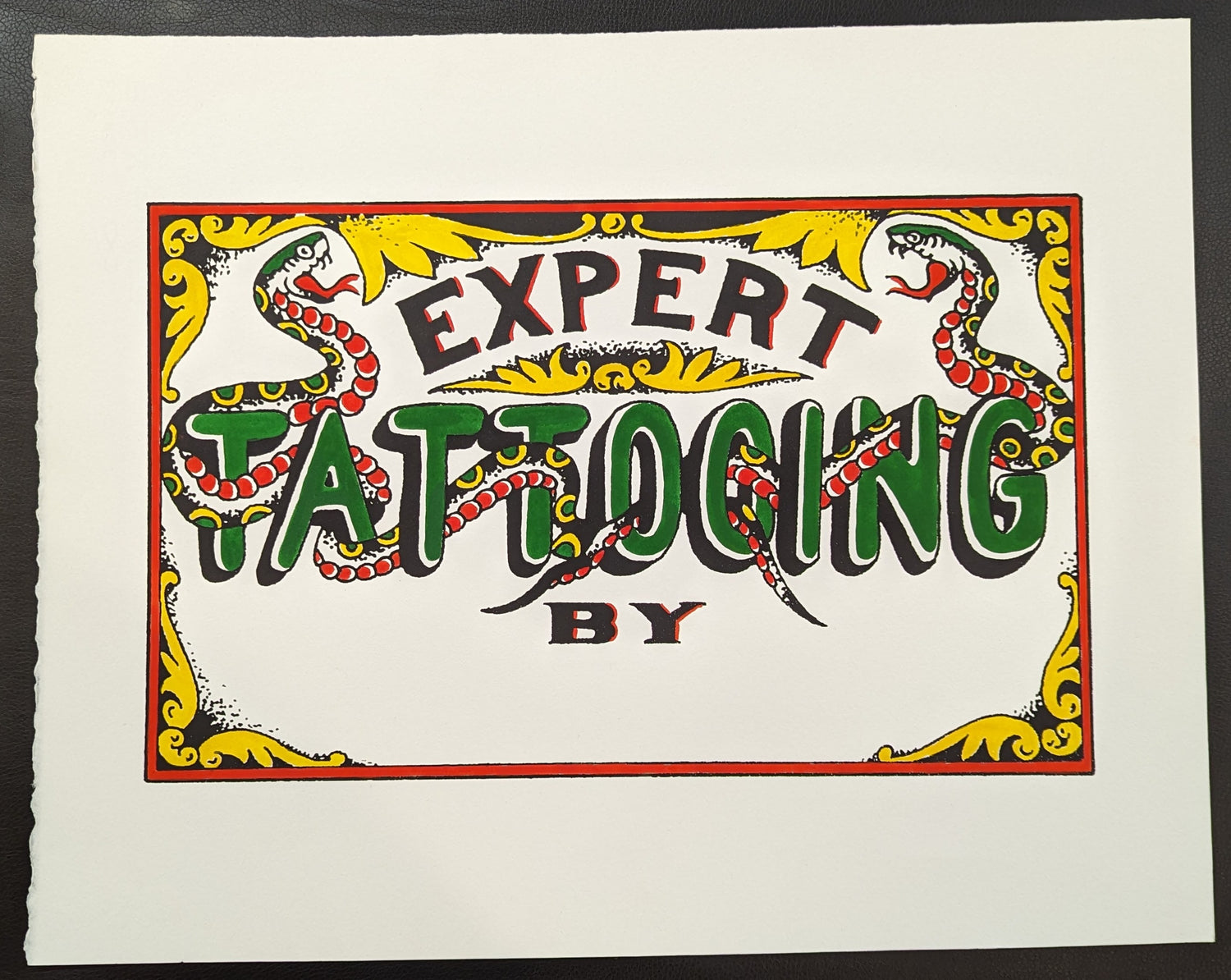 Screen printed tattooing sign with hand painted color. Add your own name or Shop name!